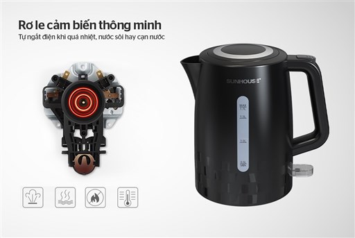 SUNHOUSE SHD1306 được trang bị rơ-le cảm biến nhiệt thông minh, có khả năng tự ngắt điện khi nước sôi hoặc khi cạn nước, giúp bảo vệ người dùng và ngăn ngừa cháy nổ. Hệ thống an toàn này còn giúp tăng tuổi thọ sản phẩm, đảm bảo ấm hoạt động ổn định và bền bỉ theo thời gian.
