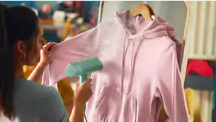 Hơi nước nóng của bàn ủi hơi nước cầm tay Dòng 3000 của chúng tôi giúp loại bỏ mùi hôi và làm mới quần áo chất liệu tinh xảo của bạn ngay lập tức. Giặt ít hơn, ủi ít hơn, tiết kiệm điện năng và kéo dài tuổi thọ của quần áo!