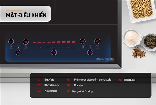 Cảnh Báo & Ngắt Chống Tràn: Khi nước tràn lên bảng điều khiển, bếp sẽ tự động ngắt để bảo vệ thiết bị.