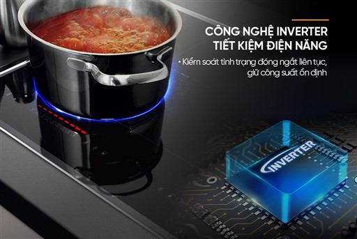 Nhờ ứng dụng công nghệ Inverter, bếp vận hành ổn định, tiết kiệm điện năng và giảm thiểu tiếng ồn khi hoạt động. Hệ thống kiểm soát công suất thông minh giúp hạn chế tình trạng bật/tắt liên tục, qua đó giảm hao phí điện và kéo dài tuổi thọ của linh kiện. Bếp hoạt động êm ái, mượt mà, mang lại không gian bếp yên tĩnh và thoải mái hơn cho người sử dụng.