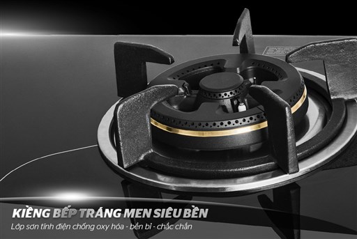Bếp được trang bị đầu đốt bằng đồng thau có nhiều khe nhỏ giúp phân bổ lửa đều theo 3 vòng, tạo ngọn lửa xanh mạnh mẽ và ổn định. Chất liệu đồng thau giúp chống mài mòn, không biến dạng dù sử dụng liên tục ở nhiệt độ cao.