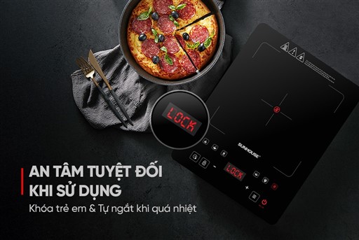 Bếp được trang bị khóa trẻ em giúp ngăn thao tác nhầm và chức năng tự ngắt khi quá nhiệt, bảo vệ an toàn cho người dùng. Các cơ chế kiểm soát điện và nhiệt được tích hợp giúp bếp vận hành ổn định, hạn chế rủi ro chập điện hay quá tải nhiệt, đặc biệt an toàn cho gia đình có trẻ nhỏ.