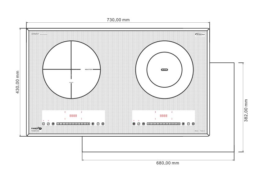 Kích thước lắp đặt bếp từ Thailand: FD - 828ACH