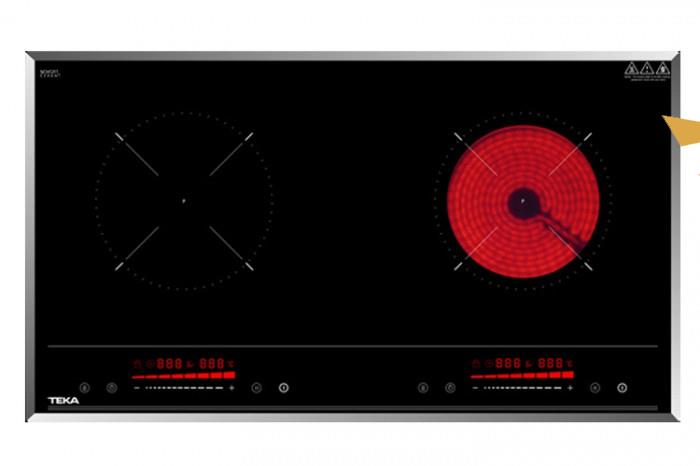 Bếp từ kết hợp điệnTeka HIC 7322S thiết kế 2 vùng nấu, trong đó vùng nấu là từ có thể sử dụng các bộ nồi chảo inox từ, tiết kiệm điện và đun nấu nhanh hơn và 1 vùng nấu là hồng ngoại không kén nồi và có thể nướng trực tiếp trên bề mặt bếp. Với 1 bếp từ có vòng nhiệt 210mm, 1 bếp hồng ngoại có vòng nhiệt 230mm. giúp tránh bị thất thoát nhiệt năng khi sử dụng. Bếp từ kết hợp điệnTeka HIC 7322S được trang bị màn hình LED hiện đại hiển thị các chức năng nấu nướng khi được chọn. Nhờ vậy, chỉ cần đọc qua cách hướng dẫn sử dụng hoặc xem chức năng hiển thị trên bề mặt bếp là bạn có thể thực hiện thành thạo ngay vì các chức năng hiển thị rõ ràng, thao tác đơn giản.