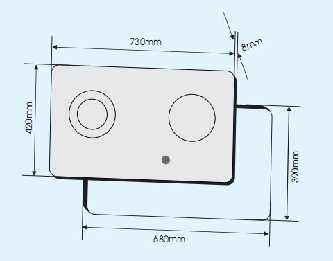 Kích thước mặt kính: 730 x 420mm