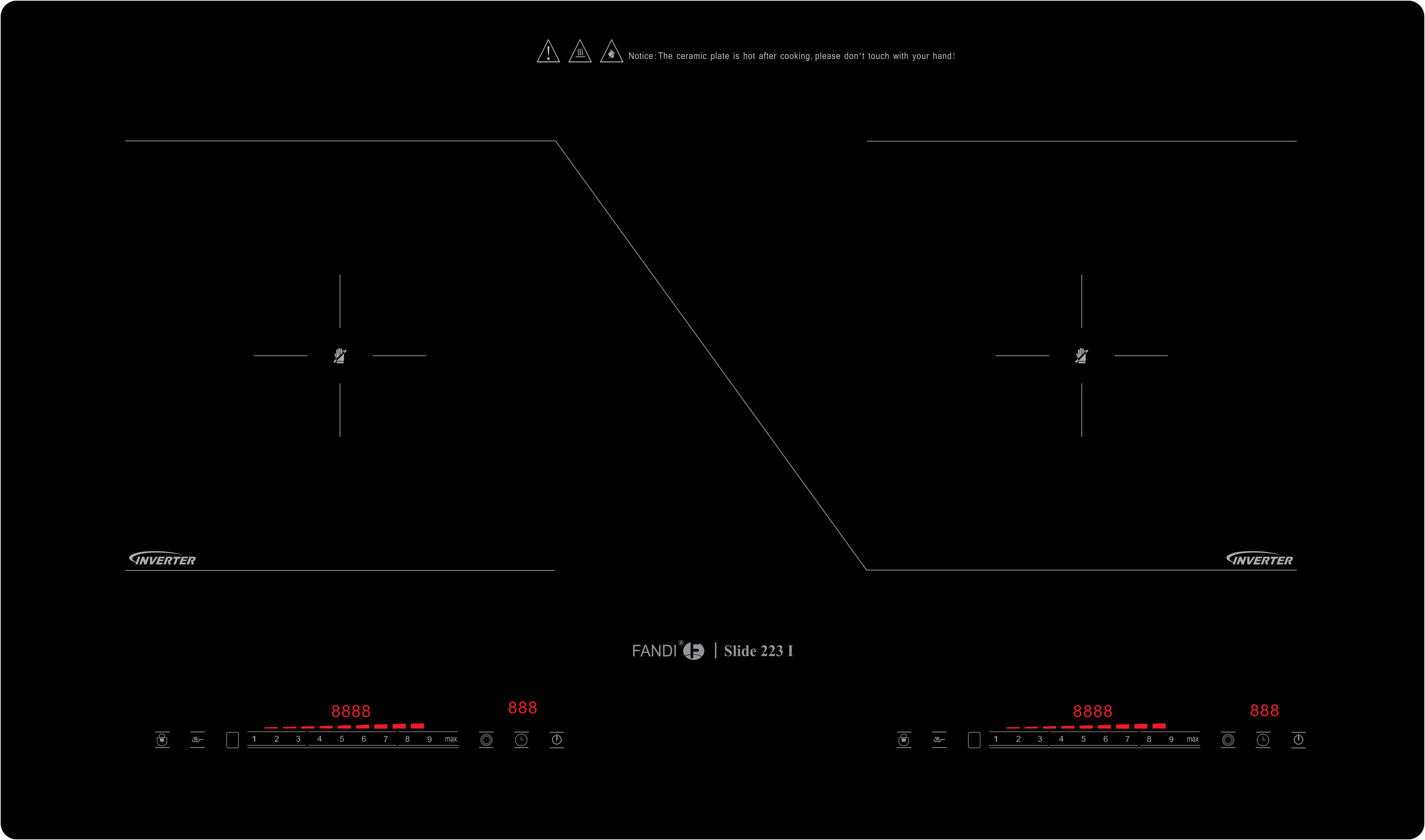 Bếp từ FD-223I được thiết kế sang trọng với 2 vùng nấu riêng biệt, điều khiển cảm ứng phím trượt sline dạng ẩn hiện đại nhanh nhạy và dễ sử dụng với những thao tác trượt nhẹ, tiết kiệm điện năng hiệu quả, an toàn tuyệt đối.