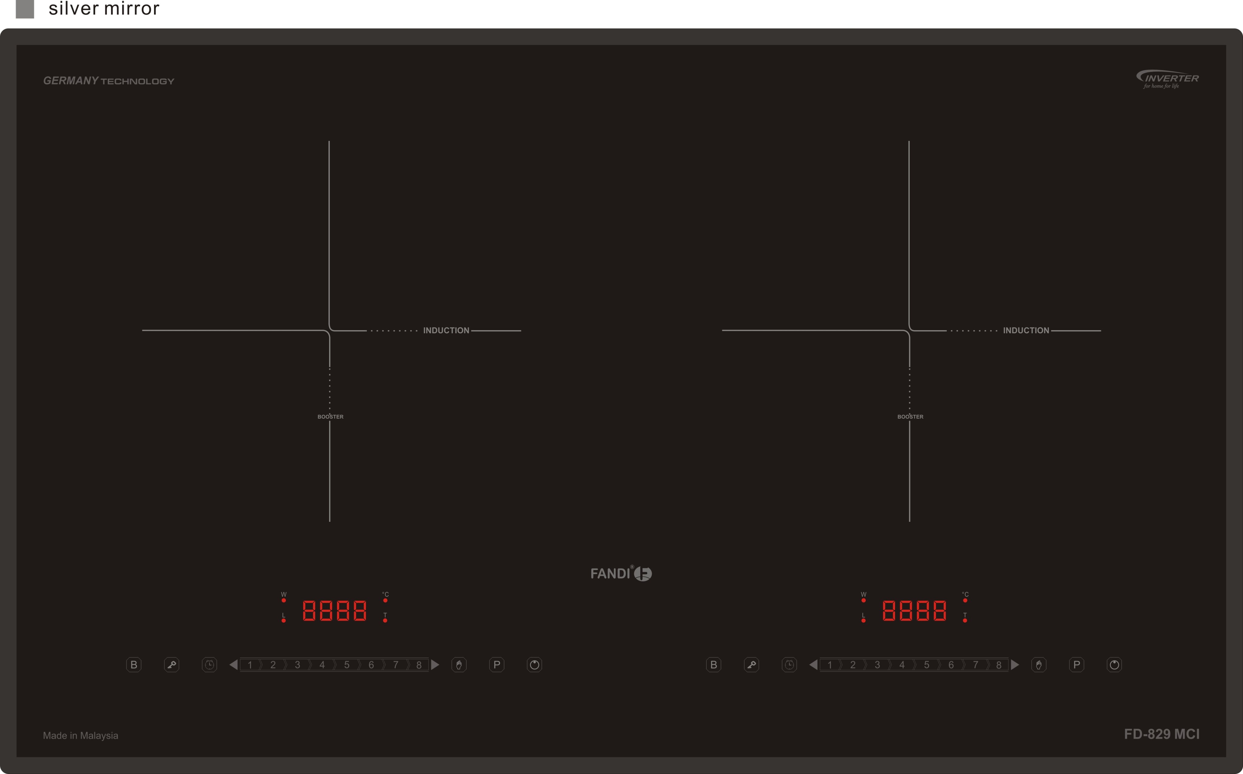 FD - 829 MCI thiết kế hiện đại, sang trọng với 2 vùng nấu riêng biệt, với điều khiển cảm ứng phím trượt slide dạng ẩn hiện đại nhanh nhạy và dễ sử dụng với những thao tác trượt nhẹ, tiết kiệm điện năng hiệu quả, an toàn tuyệt đối.
