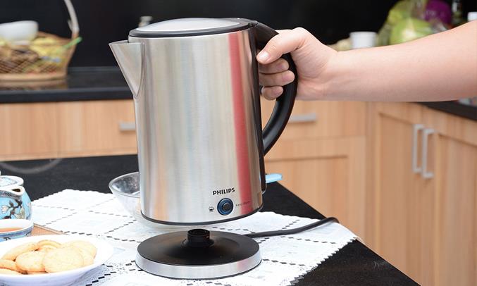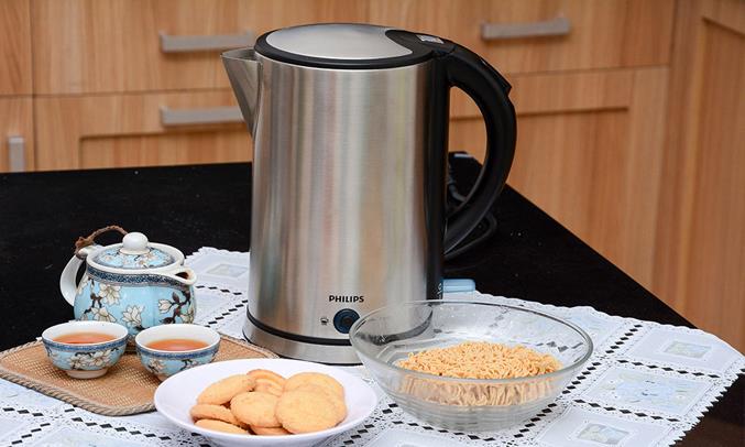 Bình đun siêu tốc Philips có dung tích 1,7 lít với công suất 1800W đáp ứng tốt với các nhu cầu như pha sữa, pha trà, nấu mì… của nhiều gia đình hiện nay.