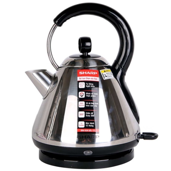 Ấm siêu tốc Sharp trang bị đế xoay 360 độ giúp bạn nhấc lên và đặt xuống một cách dễ dàng. Bên cạnh đó, chiếc ấm có thiết kế miệng hình phễu để bạn rót nước sau khi đun ra khỏi ấm dễ dàng mà không lo bị đổ nước ra ngoài hay bị bỏng.