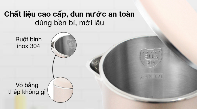 Vỏ bình bằng thép không gỉ dễ lau chùi, giữ sản phẩm mới lâu.