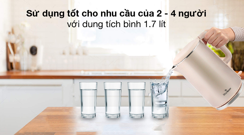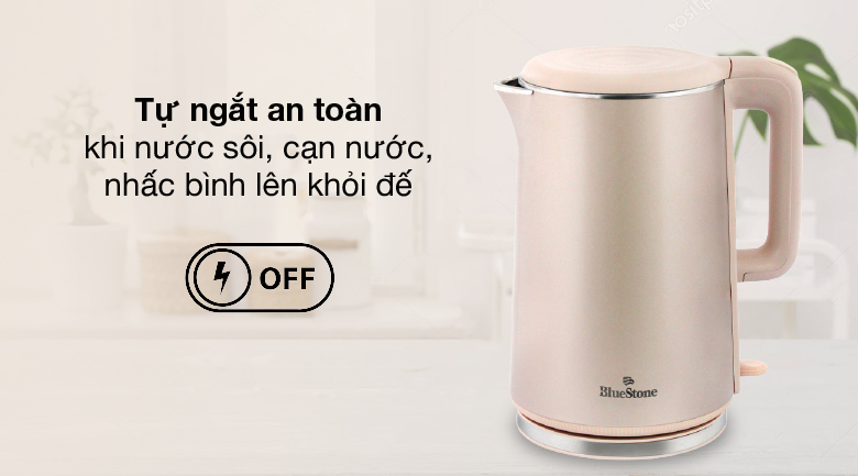 Bình đun siêu tốc Bluestone 1.7 lít KTB-3459 màu sắc nhã nhặn, công suất lớn, chất liệu bền bỉ, an toàn, dung tích 1.7 lít đáp ứng tốt nhu cầu nước nóng cho 2 - 4 người dùng.