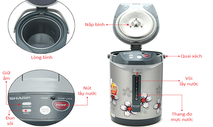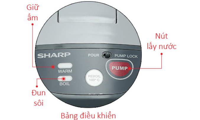 Sản phẩm bình thủy điện Sharp có 2 hệ thống lấy nước, lấy nước bằng bơm điện và bơm tay đơn giản, dễ sử dụng, đồng thời giúp tiết kiệm năng lượng.