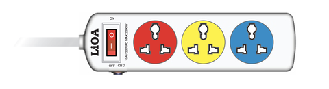 - Số Ổ cắm : 03 ổ cắm đa năng có nắp che an toàn, mỗi ổ căm 1 mầu tránh nhầm lẫn, an toàn hơn