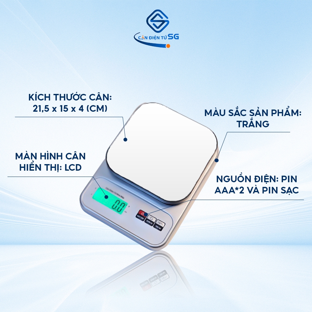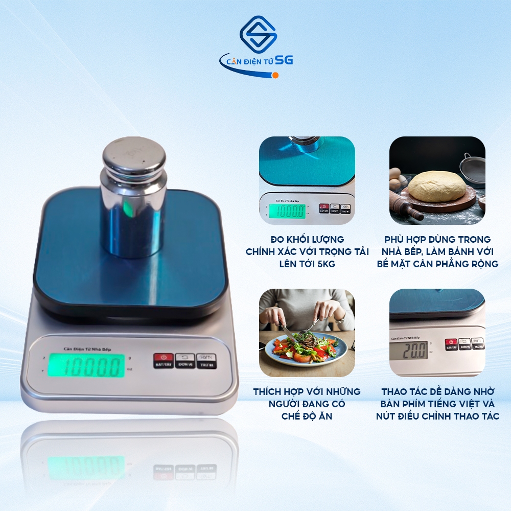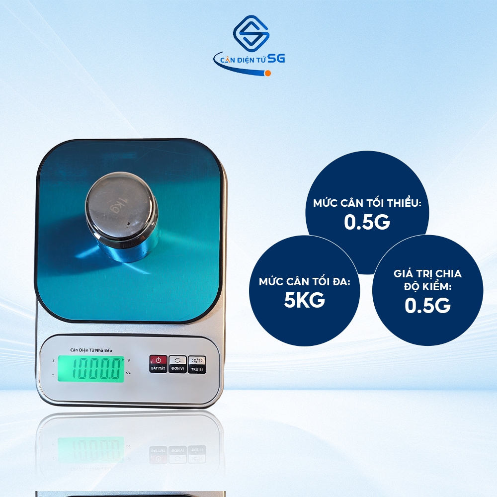 - Cân tiểu ly điện tử giúp cân đo khối lượng sản phẩm một cách chính xác và chi tiết với trọng tải lên tới 5kg
