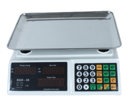 Là loại cân tích hợp giữa chức năng cân trọng lượng và tính toán tiền. Người bán chỉ cần nhập đơn giá theo kg, đặt hàng lên cân, máy sẽ tự động hiển thị trọng lượng, đơn giá và số tiền cần thanh toán. Toàn bộ thông tin được thể hiện trên màn hình LED hoặc LCD rõ ràng, tiện theo dõi