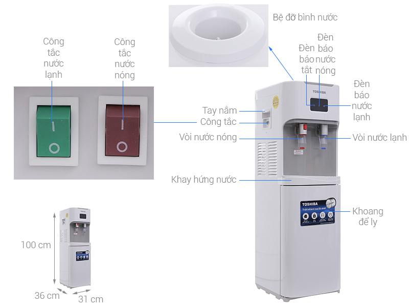 Cây nước nóng lạnh Toshiba RWF-W1664TV(W) kiểu dáng chắc chắn, hiện đại, cung cấp đủ nước nóng, nước lạnh cho gia đình, công ty… sử dụng, giá tốt.