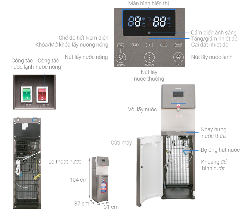 Có chế độ ECO dùng cây nước nóng lạnh tiết kiệm điện.