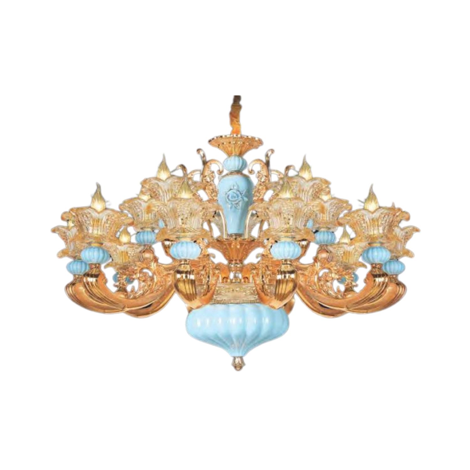 Hệ thống chiếu sáng của đèn sử dụng 15 bóng đèn chuẩn chuôi E14. Các bóng đèn được bố trí hợp lý trên thân đèn giúp ánh sáng lan tỏa đều khắp khu vực sử dụng. Ánh sáng khi kết hợp với các chi tiết chao đá tạo nên hiệu ứng ánh sáng dịu nhẹ, mang lại cảm giác ấm cúng và sang trọng.