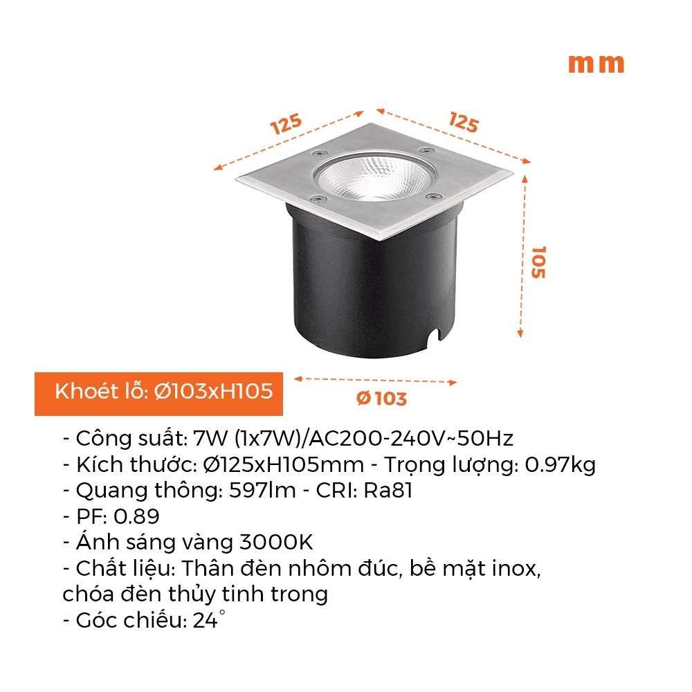 Đèn LED âm đất Nanoco NGL2642 là một lựa chọn hoàn hảo cho những không gian sân vườn của bạn. Với công suất 7W, đèn có khả năng tạo ra ánh sáng dịu nhẹ và mát mẻ mà không gây ảnh hưởng đến thị lực. Đặc biệt, chỉ số IP67 đảm bảo khả năng kháng bụi và kháng nước cao, phù hợp để sử dụng ở cả trong nhà và ngoài trời. Thiết kế hình trụ với góc chiếu sáng cao như tường nhà và cây xanh mang lại ánh sáng lung linh cho không gian sân vườn của bạn