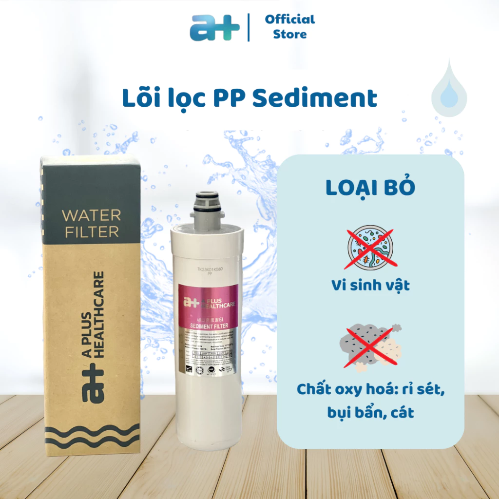 Lõi lọc PP Sediment: tối đa hoá hiệu quả lọc nước từ giai đoạn đầu bằng cách loại bỏ hoàn toàn các vi sinh vật, các chất bị oxy hoá bao gồm rỉ sét, bụi bẩn, cát, và các tạp chất cực nhỏ.
