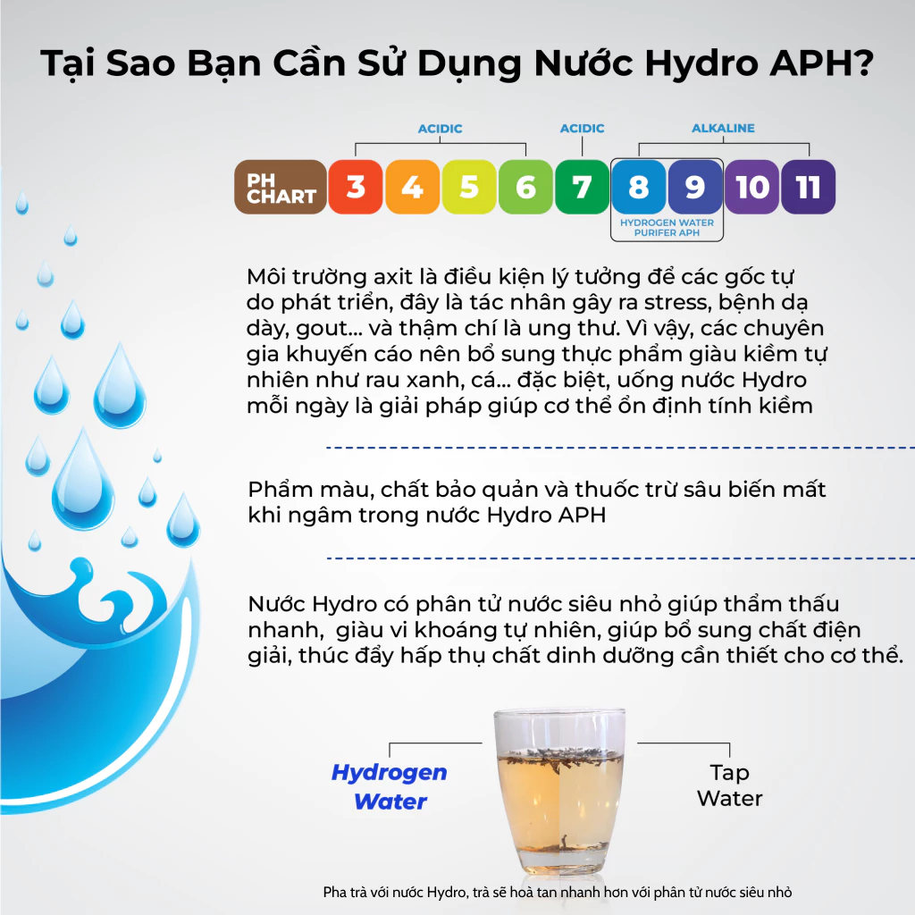Nước hydro là một loại nước có chứa phân tử hydro (H2) có nhiều lợi ích sức khỏe, bao gồm khả năng chống oxy hóa, giảm viêm, tăng cường hệ miễn dịch, và cân bằng pH. Ngoài ra, nước hydro cũng có thể giúp cải thiện tình trạng da, tăng cường năng lượng, và hỗ trợ quá trình tiêu hóa. Với những lợi ích này, nước hydro trở thành một sự lựa chọn phổ biến cho việc duy trì sức khỏe và cải thiện chất lượng cuộc sống hàng ngày.