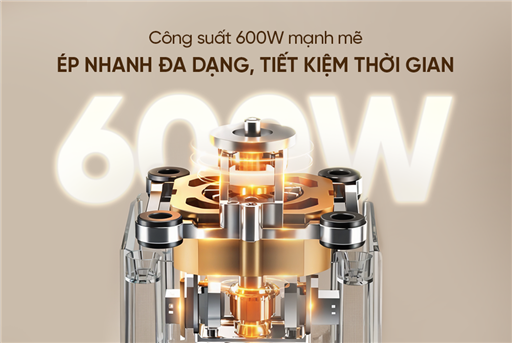 Công suất 600W ép nhanh, tiết kiệm thời gian