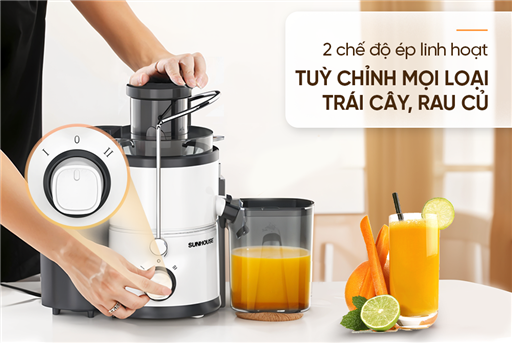 2 chế độ ép linh hoạt, phù hợp nhiều loại trái cây, rau củ
