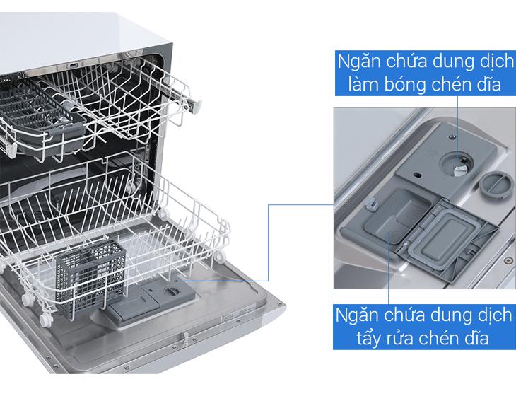 Máy có công suất 1480W, rửa được 8 bộ chén đĩa châu Âu (tương đương 2 bữa ăn gia đình 2 – 3 người). Công nghệ Autoflex giúp tối ưu điện, nước và chất tẩy rửa mà vẫn đảm bảo hiệu quả. Máy tiêu thụ khoảng 8 lít nước cho mỗi chu trình, có thể rửa được chén, tô, đĩa, ly và nồi vừa nhỏ.