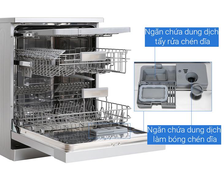 – Máy có 3 khay rửa: khay dao kéo, khay dưới và khay trên.
