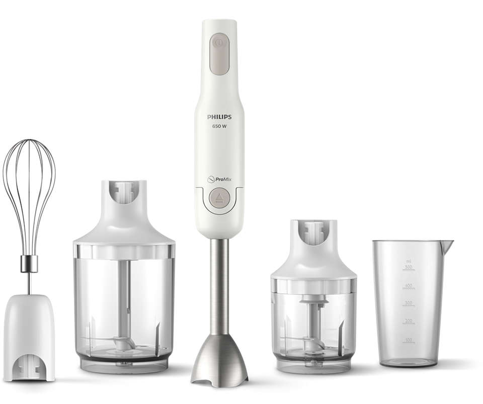 Máy xay cầm tay Philips được trang bị que đánh kem dùng để đánh kem, xốt mayonnaise, bột nhão làm bánh kếp và nhiều món nữa.