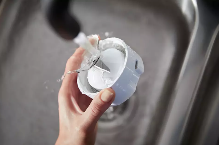 Thiết kế nắp tháo rời giúp bạn dễ dàng vệ sinh. Các bộ phận tháo rời như cối, lưỡi xay và nắp đều có thể làm sạch bằng máy rửa chén.