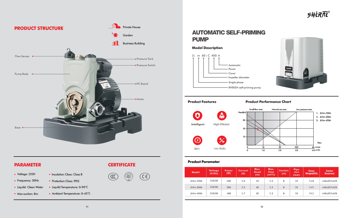 Máy Bơm Tự Mồi Tự Động Nước Nóng Lạnh Shirai JLHm 250A – Tiện lợi, ổn định cho gia đình
