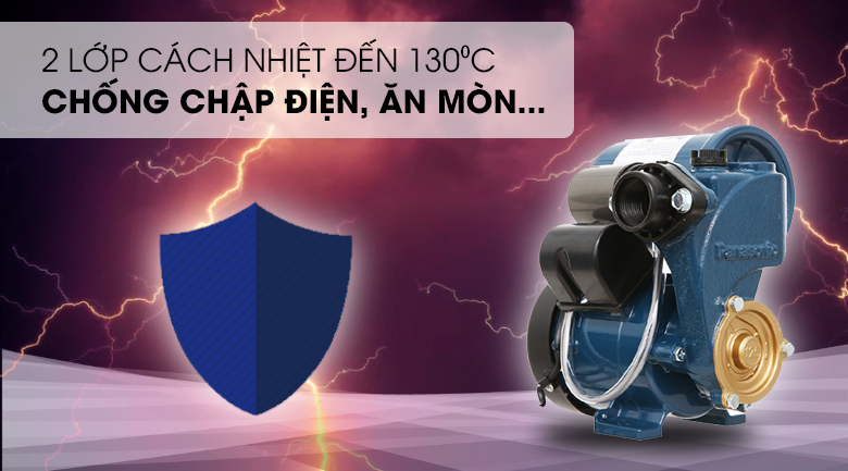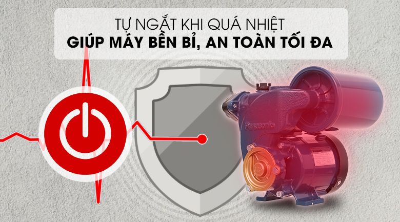 Máy bơm tăng áp Panasonic này sẽ tự ngắt điện khi nhận thấy nhiệt độ bơm quá cao trên 130⁰C vô cùng an toàn. Hơn nữa, lõi quay motor còn được phủ lớp chống rỉ sét đảm bảo máy hoạt động liên tục 8000 giờ không ngừng nghỉ.