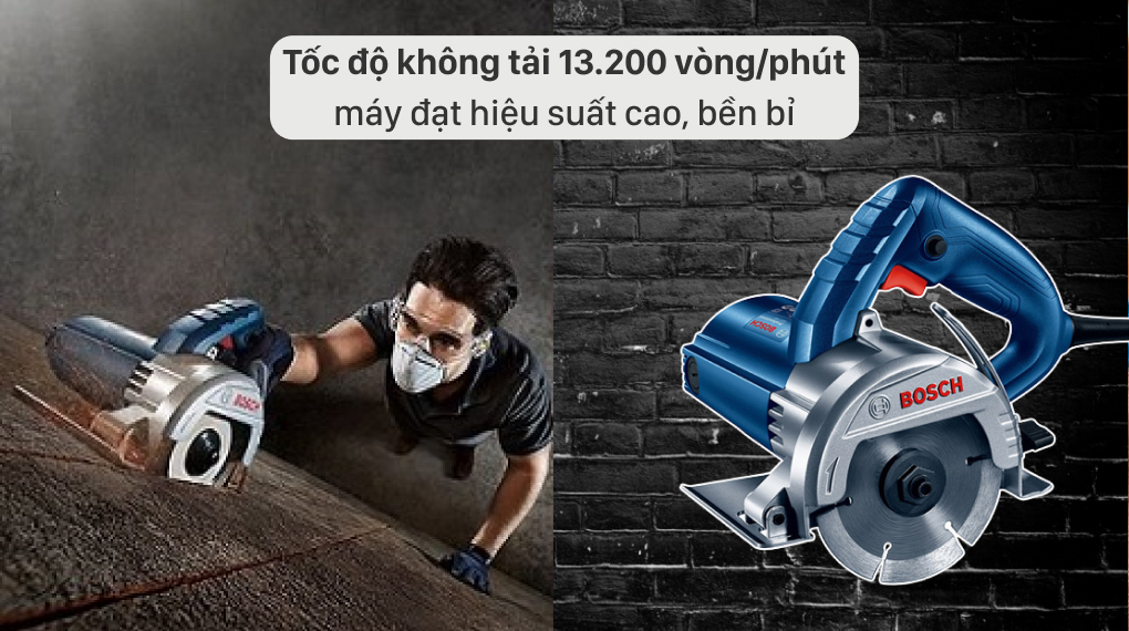- Máy cắt gạch Bosch sở hữu công suất 1400W và tốc độ không tải lên đến 13.200 vòng/phút có khả năng điều khiển tốc độ cắt đạt hiệu suất cao, thời gian hoàn thành được rút ngắn nhờ những vòng cắt nhanh, phục vụ tốt nhu cầu thiết yếu cho mọi công trình xây dựng.
