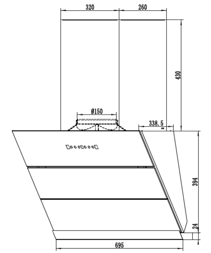 Kích thước lắp đặt máy hút mùi Fandi: FD - SH70