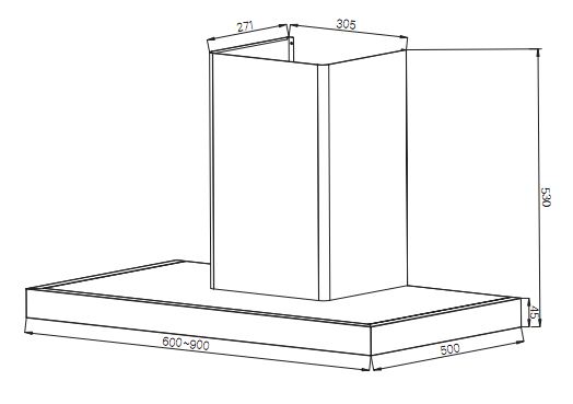 5. Kích thức lắp đặt máy hút mùi Fandi: FD: VL - 90A