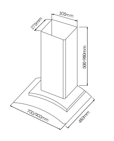 5. Kích thước lắp đặt máy hút mùi Fandi FD-90YK