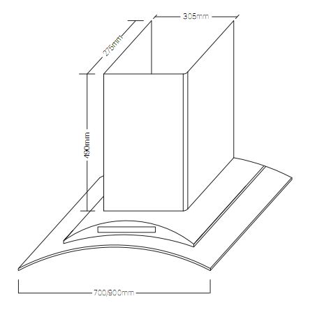 5. Kích thước lắp đặt máy hút mùi Fandi FD – VK70