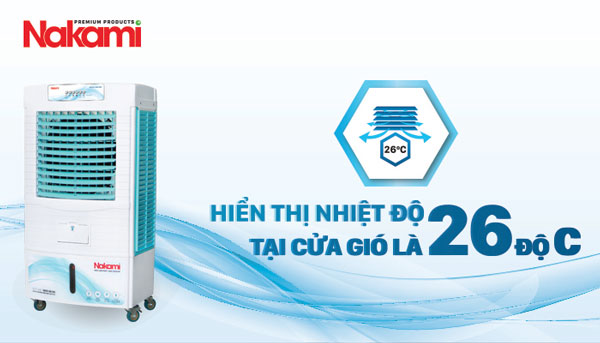 Máy làm mát Nakami NKA-05000A là thiết bị làm mát dựa theo nguyên lý bay hơi nước tự nhiên để làm mát cho không khí. Không khí nóng bên ngoài khi di chuyển qua tấm làm mát Cooling Pad hạ nhiệt độ xuống 26 độ C - 28 độ C đem đến làn gió tươi mát, dễ chịu.