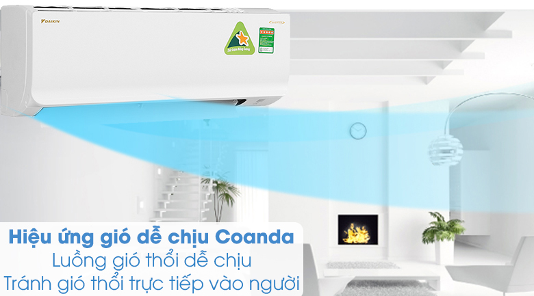 Luồng gió được tạo ra do thiết kế độc đáo trên chiếc máy lạnh Daikin Inverter 1.5 HP ATKA35UAVMV. Luồng gió đi lên trần và dọc theo các vách tường, giúp mang lại không khí thoải mái cho toàn bộ căn phòng, cũng tránh được gió thổi trực tiếp vào cơ thể gây khó chịu cho người dùng, đặc biệt là người già và trẻ nhỏ.