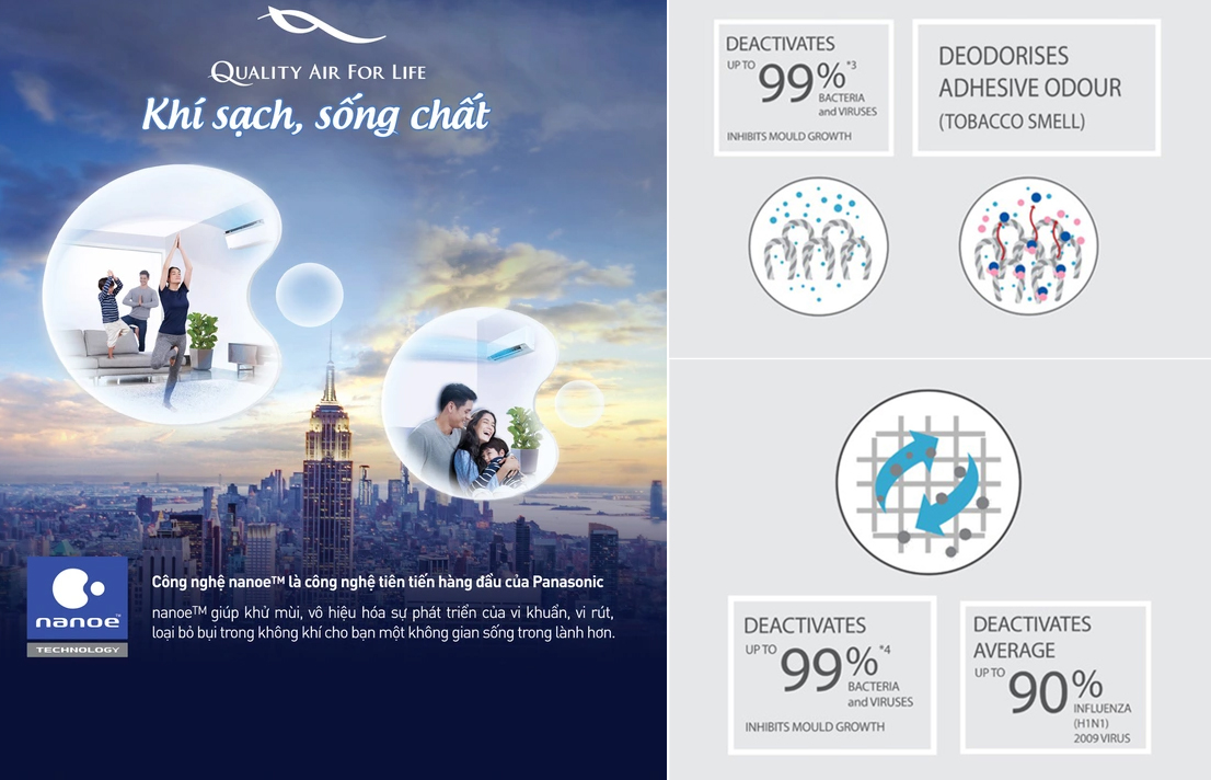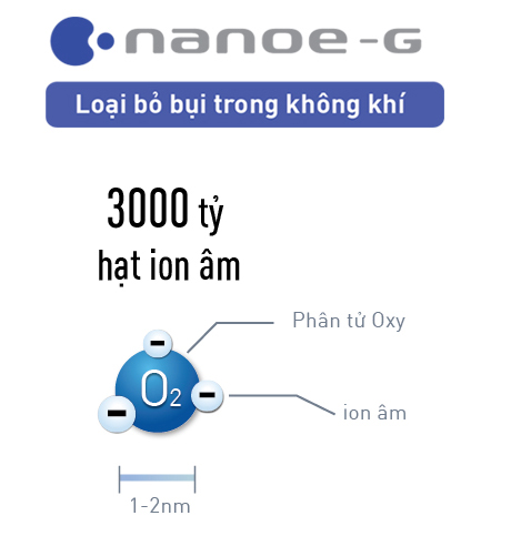 Hệ thống lọc khí nanoe-G giúp loại bỏ các hạt PM2.5 trong mội trường ơ nhiễm hiện nay, loại bỏ vi khuẩn, vi rút, giúp giải phóng 3000 tỷ hạt ion tích điện âm mà chúng bám trên đồ vật.
