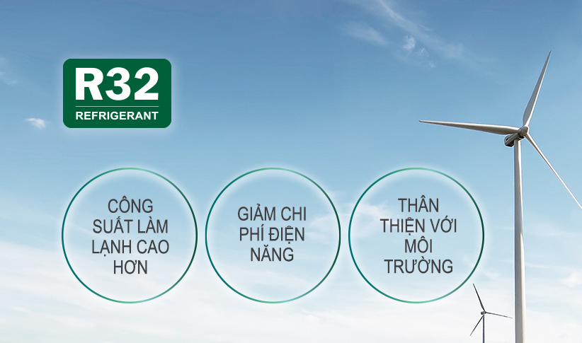 Máy lạnh Panasonic sử dụng gas R32 là môi chất làm lạnh mới nhất hiện tại. Trong 3 loại gas làm lạnh phổ biến với điều hòa dân dụng hiện tại là R22, R410A và R32 thì lựa chọn R32 là tốt nhất cho cả tiết kiệm năng lượng do hiệu suất làm lạnh cao hơn hẳn so với R22, R410A cũng như đặc biệt thân thiện với môi trường khi giúp giảm lượng khí thải lên tới 75%, hạn chế khả năng nóng lên toàn cầu, không gây hại cho tầng Ozone.