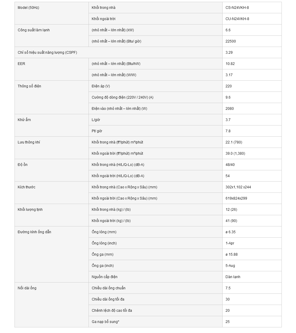 [Sản Phẩm Ngừng Kinh Doanh] Máy lạnh Panasonic N24VKH-8 (2.5HP)