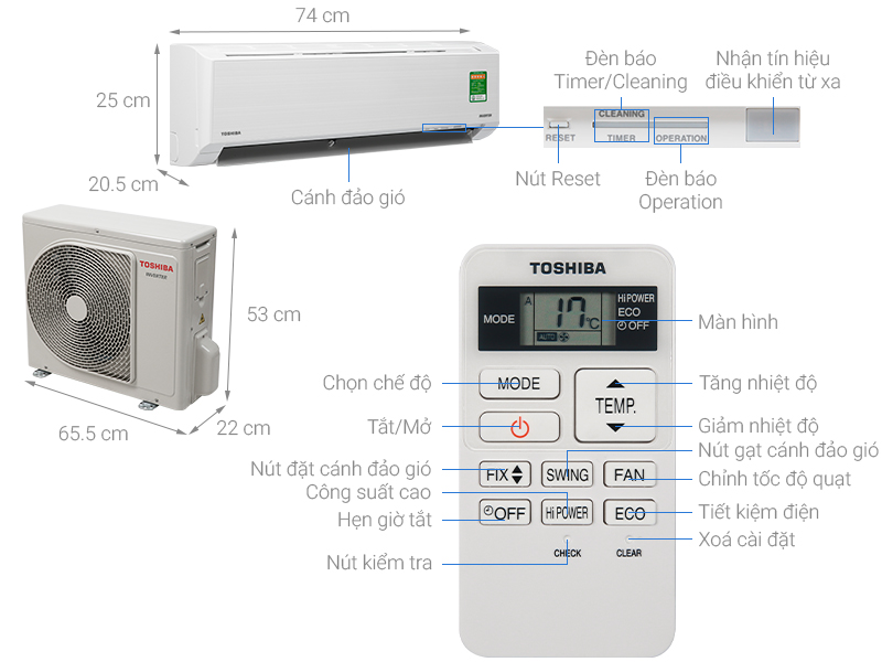 | Lọc bụi, kháng khuẩn, khử mùi | Công nghệ chống bám bẩn Magic coil, Bộ lọc Toshiba IAQ |