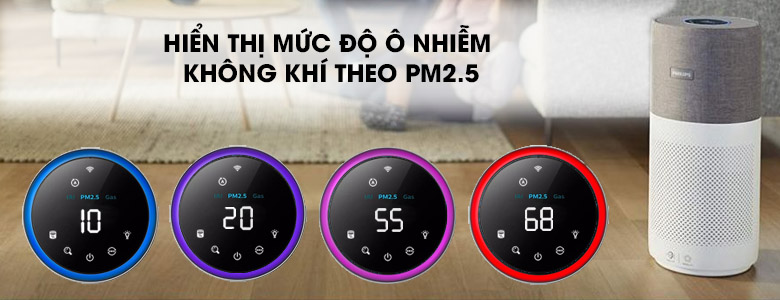Các chỉ số hiển thị mức độ ô nhiễm của không khí theo PM2.5.