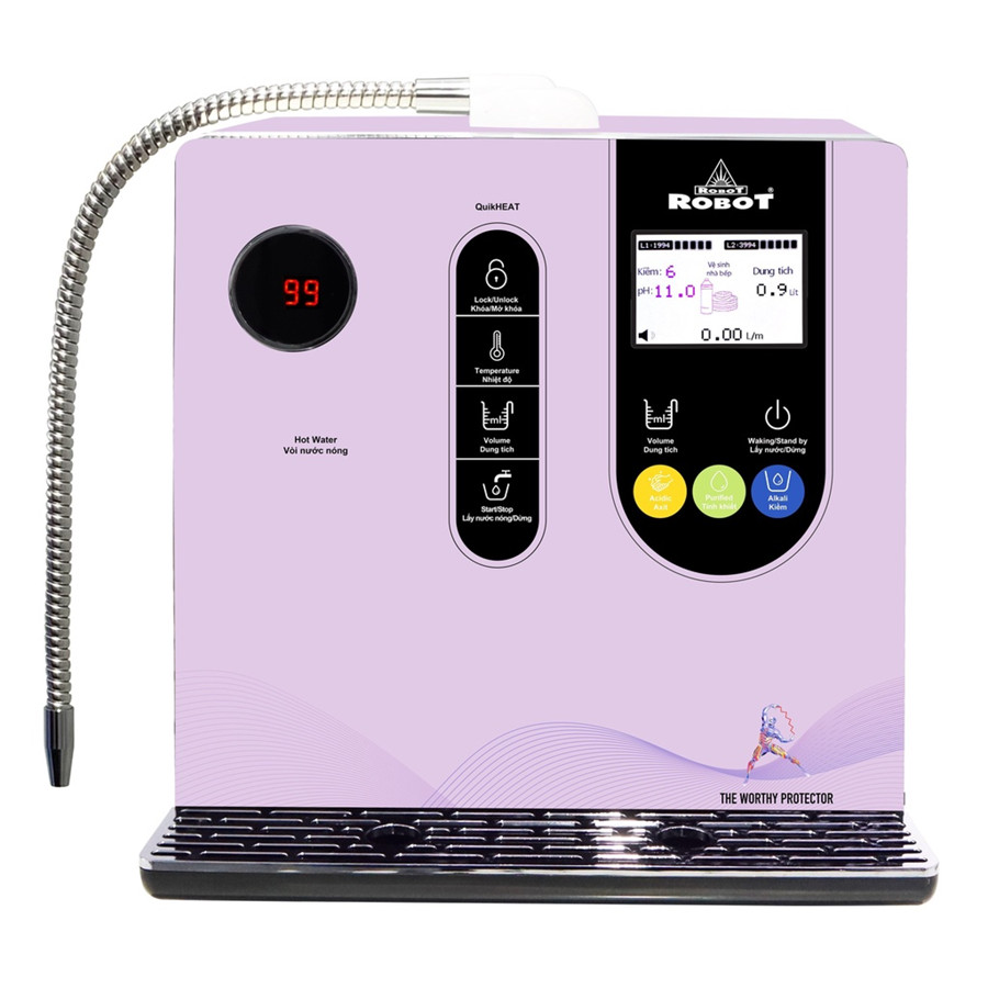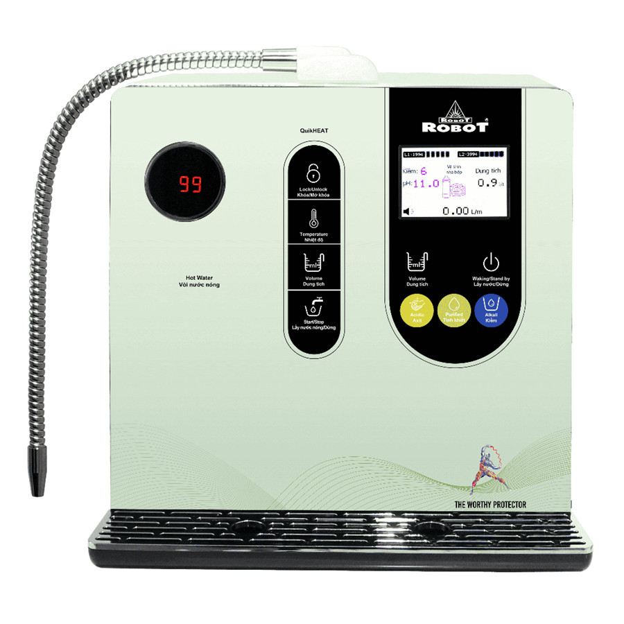 ROBOT là một trong những nhà sản xuất tiên phong thiết kế máy lọc nước điện giải có tích hợp nước Nóng thông minh, cho phép lựa chọn dung tích và nhiệt độ nước nóng ở các mức 45°C, 60°C, 80°C, 99°C, lấy ngay lập tức mà không cần đun nấu. Đồng thời máy còn có chức năng nước lạnh khoảng 10 – 12°C (ở các dòng liên quan như ionSmart, ionQueen, ionKing), góp phần tạo nên các kỷ lục Việt Nam, Châu Á và Thế Giới về sáng tạo trong ngành nước uống tốt cho sức khỏe.