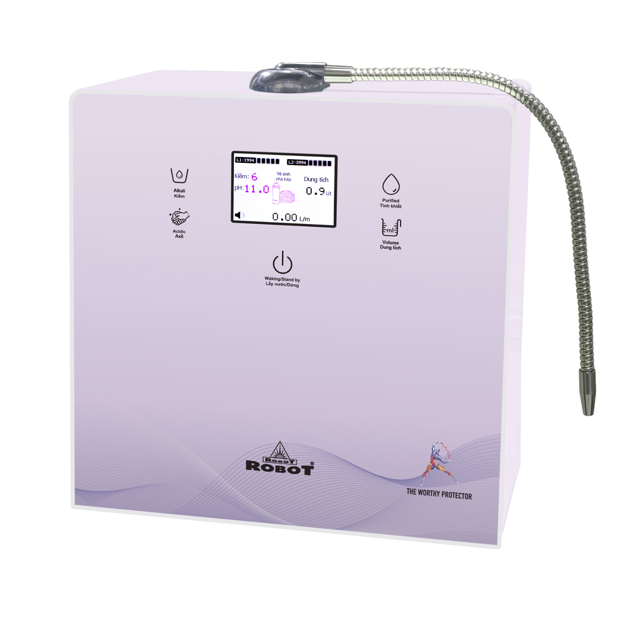 Công nghệ RMC-LCD phát minh của ROBOT, giúp kiểm soát chất lượng nước hoàn hảo, giao diện thân thiện dễ sử dụng