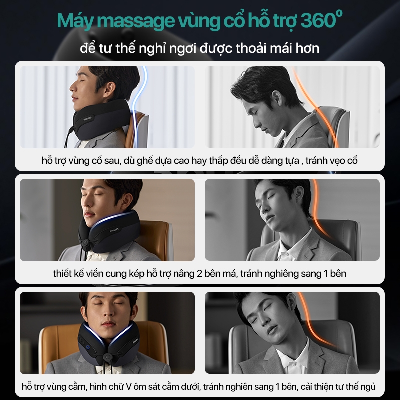 Máy massage cổ PHILIPS PPM3306 là thiết bị hỗ trợ thư giãn chuyên biệt cho vùng cổ và vai gáy, đặc biệt phù hợp với nhân viên văn phòng, tài xế hoặc những người thường xuyên ngồi lâu, ít vận động. Sản phẩm kết hợp massage rung và chườm ấm, giúp giảm đau nhức, cải thiện tuần hoàn máu và mang lại cảm giác dễ chịu sau một ngày làm việc căng thẳng.