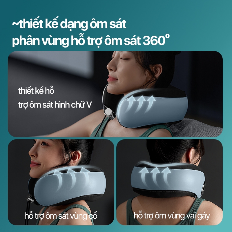 Chế độ chườm nóng duy trì ở mức 42°C nhờ cảm biến nhiệt độ thông minh, giúp tăng cường lưu thông máu và hỗ trợ giảm căng thẳng cơ. Vùng gia nhiệt có diện tích rộng khoảng 1440mm², bao phủ hiệu quả khu vực cổ, mang lại cảm giác ấm áp và dễ chịu trong suốt quá trình sử dụng.