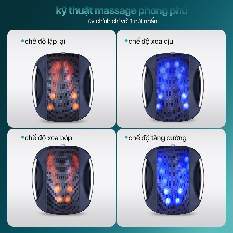 Trang bị 12 đầu massage 3D, chườm nóng 42°C